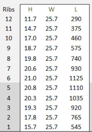 All I was saying was that my spreadsheet works with the other features in the designs that I do and if those features were to change so might the way in which the rib scale is calculated. Of course any change in the number of ribs or the length of the ribs will change their dimensions. That's a given. I'm talking about the criteria that is used to determine how much the rib scale should contribute to the support when other features might change just what the ribs need to contribute. For example: