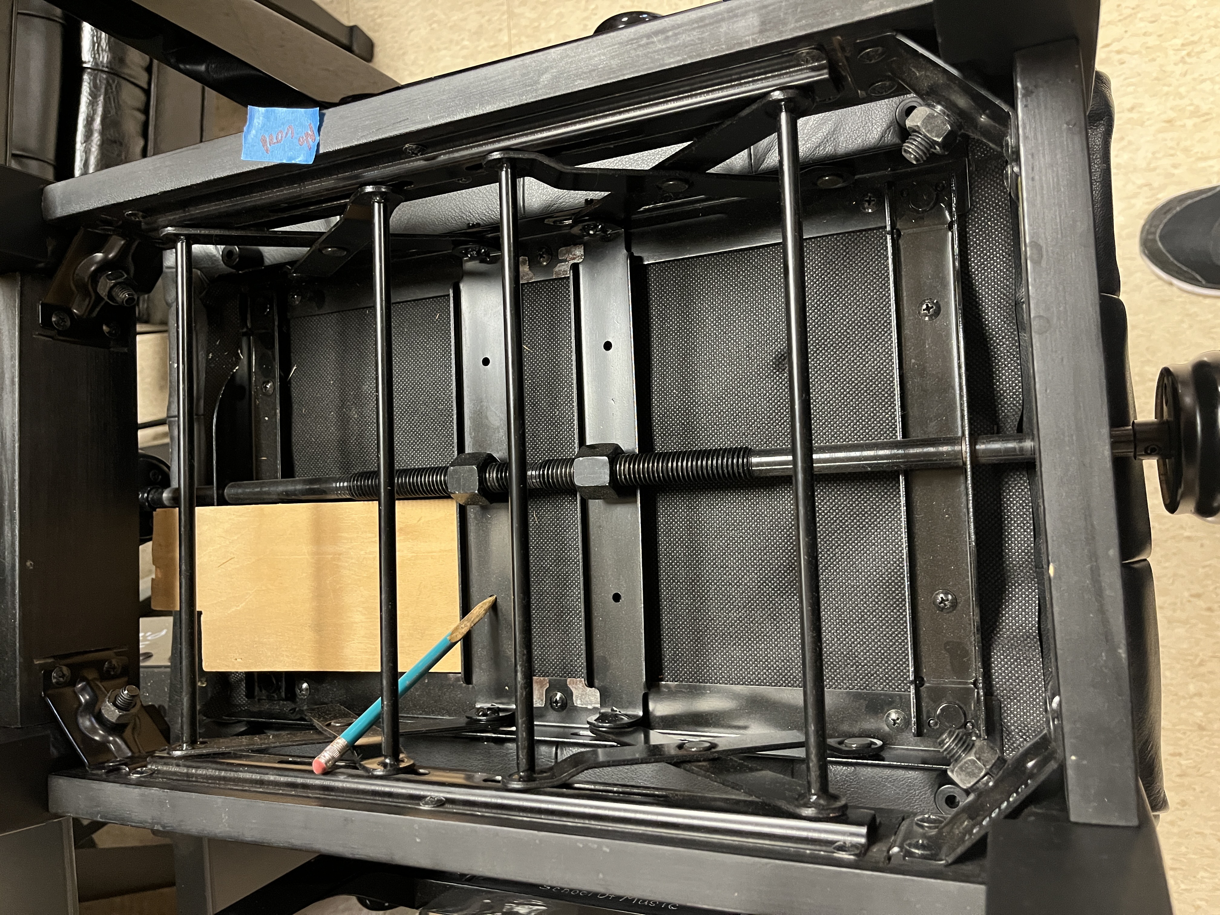 The Boston benches have a mechanism similar in shape as the Jansen bench of two x's per side, but is lacking in so many ways. They start to rock side to side and front to back very quickly after installation in grand practice room. The movement is about a half inch. I am thinking (4 screws) of locking them at a certain height by screwing braces to the seat bottom after shimming the space in between with the wood in photo.
