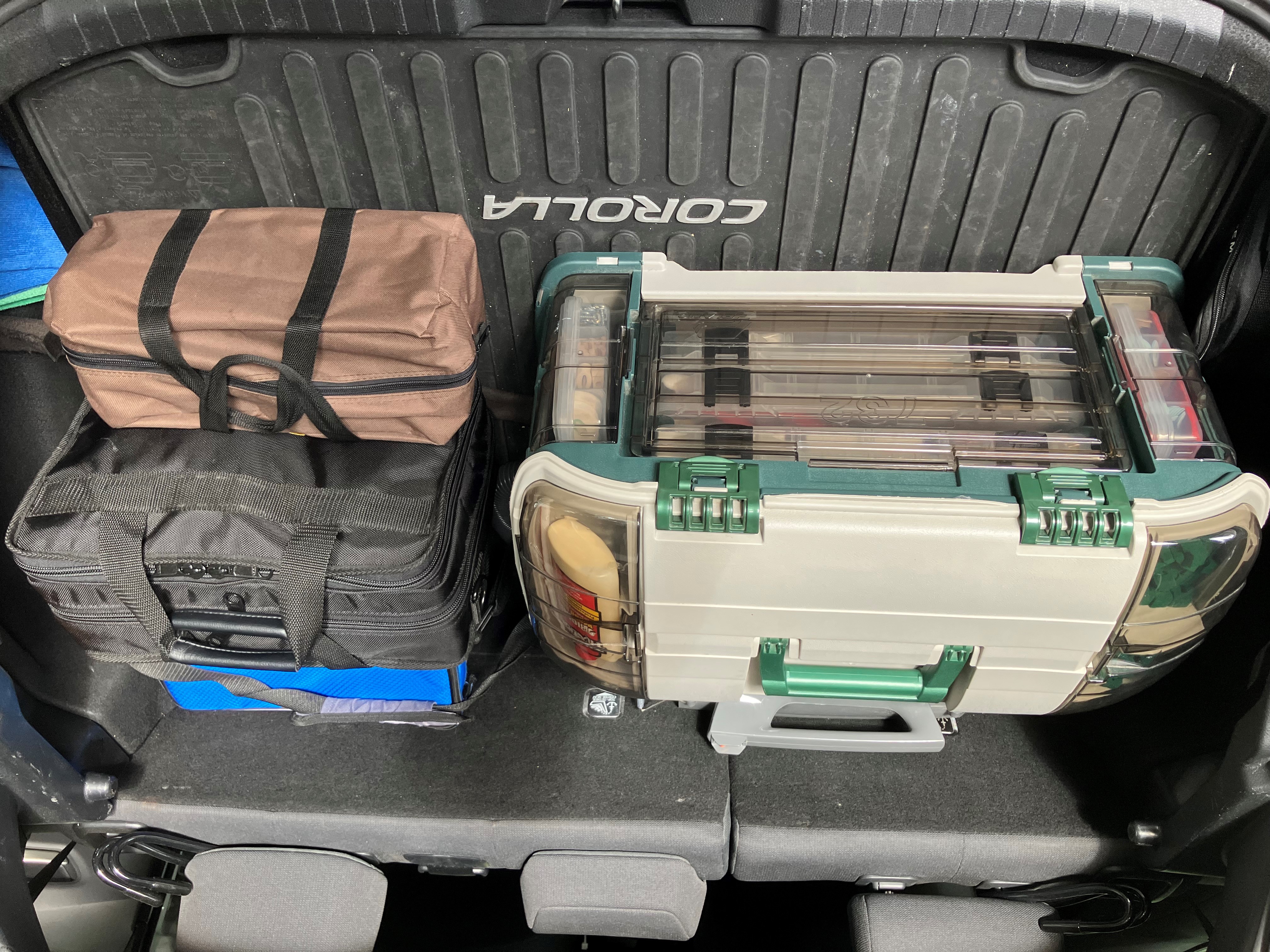 Wim and Larry's suggestions are good, parts and tools accumulate over time but we don't need to carry them into every venue. I think the two rubbermaid type containers in the back of my car take up about 5.5 cubic feet and they hold all the smaller kits and containers for tools and parts, plus a canvas gate mouth tool bag that holds the vacuum and cleaning supplies.