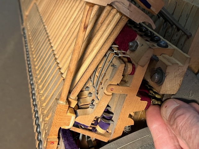 With the hammer at rest, I gently tripped the jack and on most of them, the hammer dropped meaning the rep lever was lower than the jack. I adjusted the rep lever height until there was no drop in the hammer. Then I checked for a wink using the rep lever to see I hadn't gone too far.