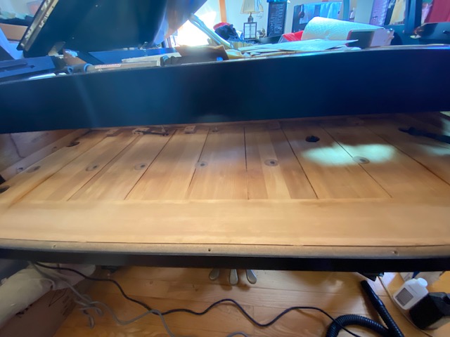 I'm well aware of that. The affected areas are in the "windows" between the keyframe's rails and styles, and it didn't make it to the hardwood inserts for the glides. But the danger with chlorine bleach is that it also attacks the chemistry of the wood, leaving the cells bare and empty. As I mentioned in the original post, if there's any stock removal to be done, it will be done with nothing more powerful than a cabinet scraper