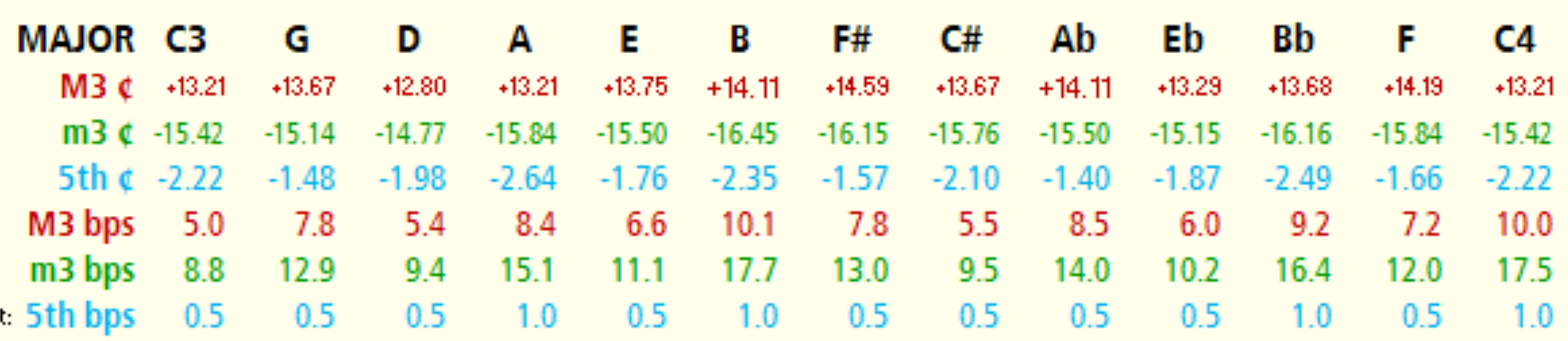 One piece of new data to me is that the application of any of these offsets to move from an EDT ET calculation to an alternate temperament may not result in the interval beat speeds that we had hoped to see. Not only inharmonicity of the piano, but the specific octave width used in the midrange will have significant effect on the beats. I've seen this using the beta version of PiaTune which is an iOS app. It is possible to display a chart of midrange M3rds and 5ths while choosing the stretch and temperament choice. I've found a number of temperaments need to have all offsets divided to achieve close to the desired beats or reaching near equal beating of indicated intervals. If anyone else is interested in looking into this send an email to support@piatune.com to get an invite to the beta. Hakki is the name of the developer and is very responsive to input from technicians.