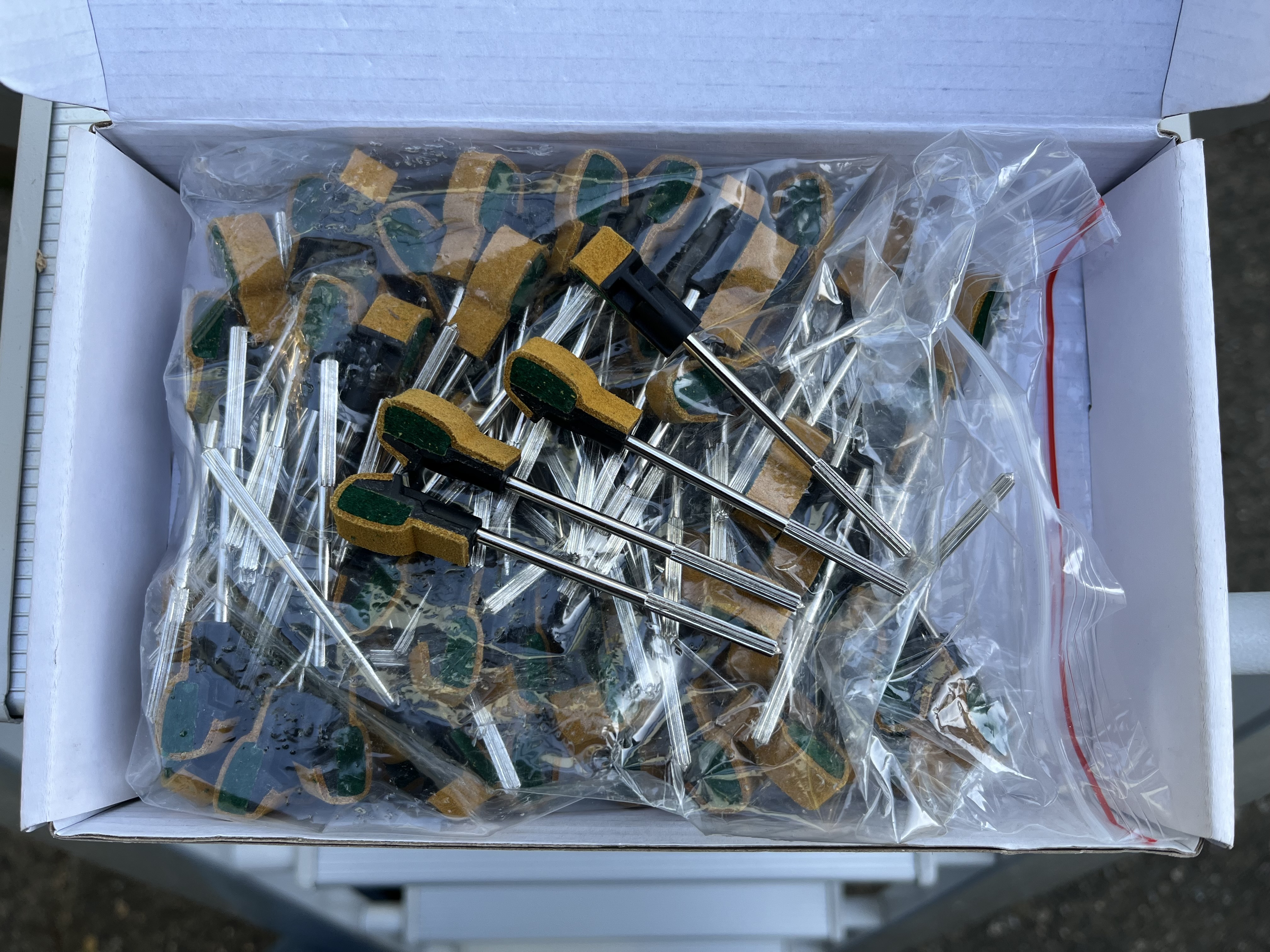 Set of 90 Wessel, Nickel & Gross backchecks. These are a different design than conventional backchecks and made from composite material, not wood. The cushions are ecsaine, which has several advantages over buckskin.The jig listed above is designed for installing these back checks, but I'm told will work for conventional style back checks as well. $200 including shipping
