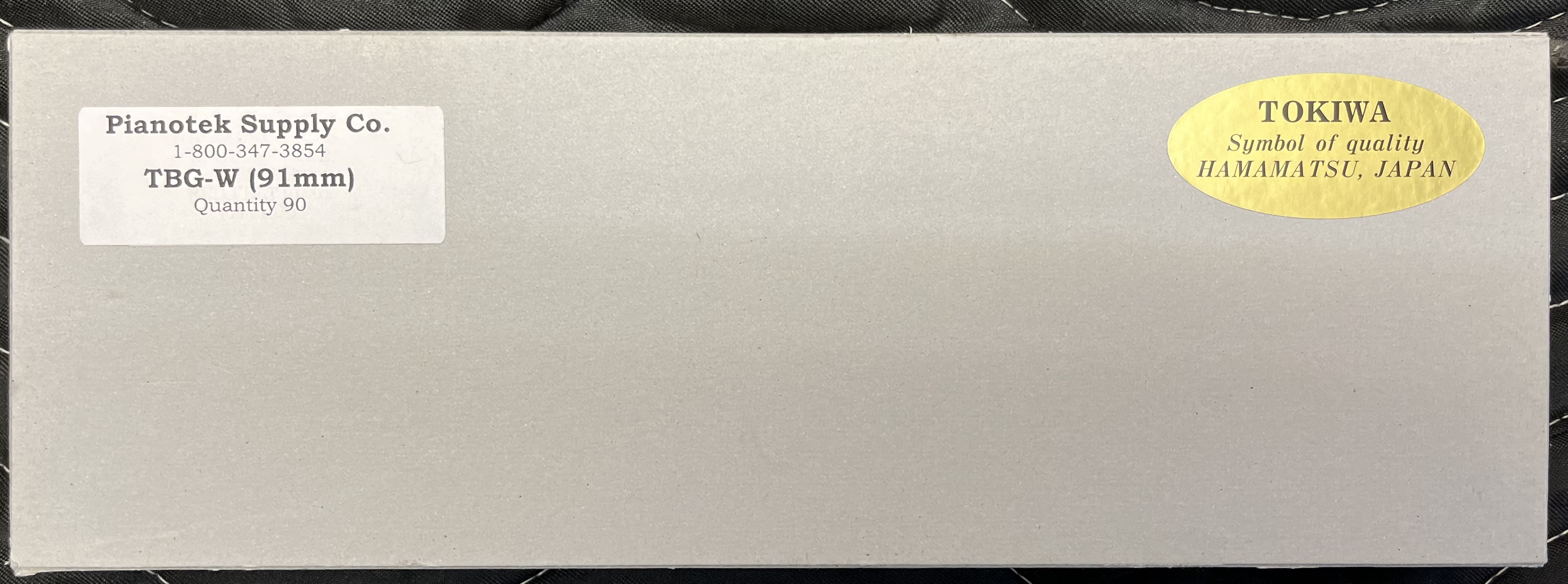Set of 90 Tokiwa backchecks with wires, regular style. Backcheck is 32mm in length; overall length with wire is 82mm (for Steinways since around 1960's). Features ecsaine synthetic buckskin for optimum checking and consistency. These fit Steinway and many other brands of piano. Box is sealed, has not been opened, all new. $200 including shipping