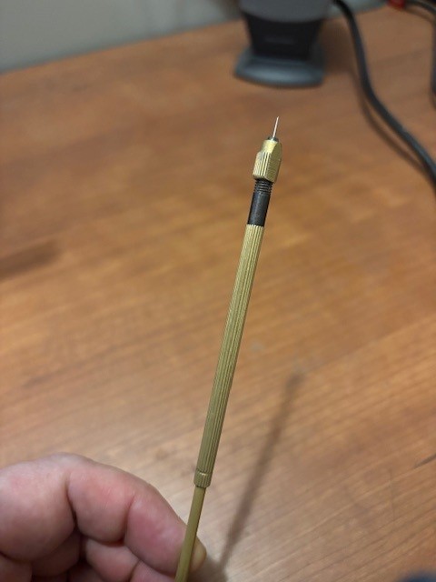 Getting the needles out of this tool can be a challenge too. I sometimes just soak the end in a little jar with some acetone. Other times I've had good luck with a propane touch. One good feature of this version of the tool is the shaft has a needle hole on both ends so you can just flip it around when one breaks. You have to glue new needles in with CA glue.