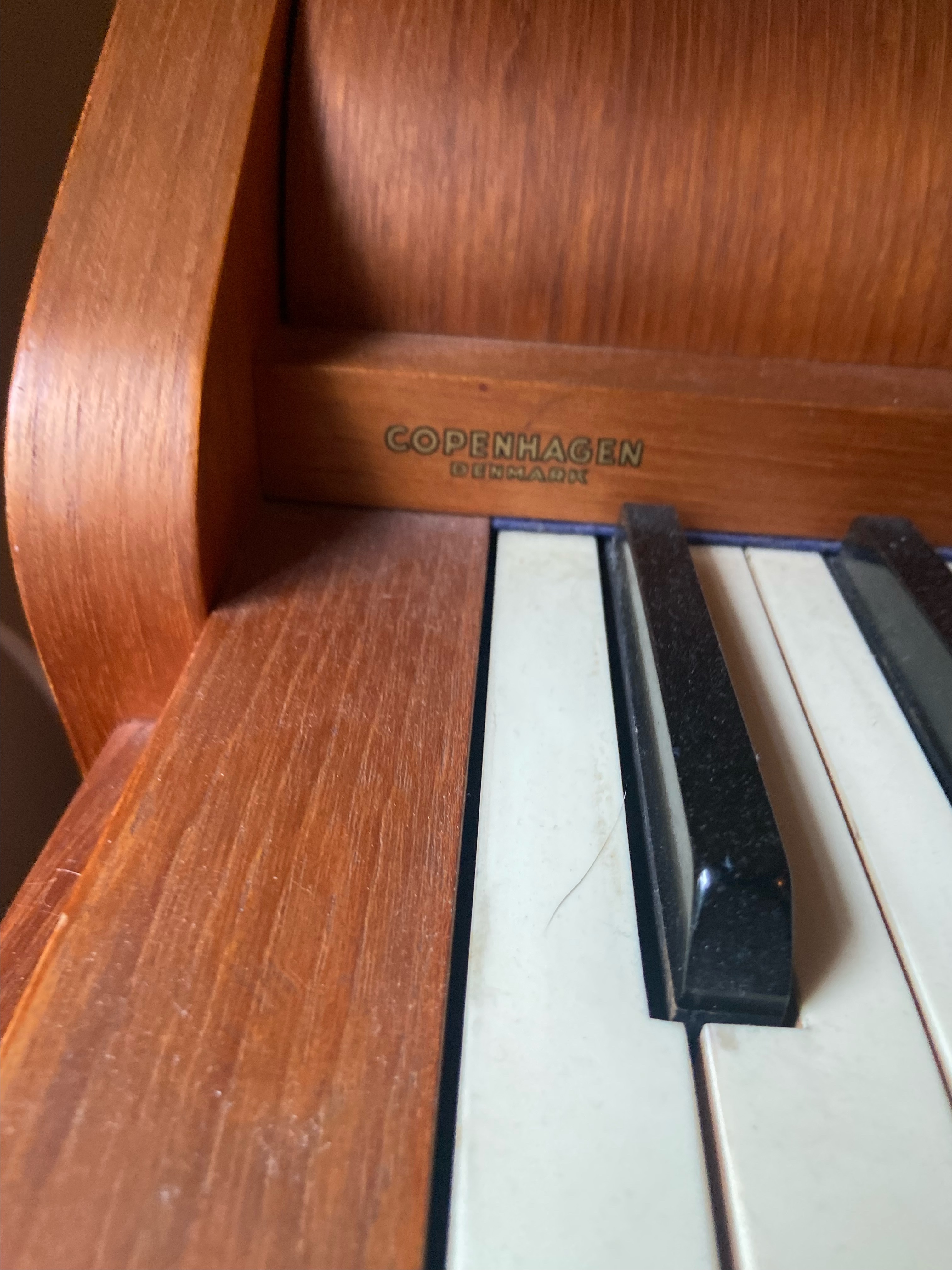 Doe anyone know the details about this piano; make, years made, history and value? I really like the style and design of the piano but the only markings on the instrument is the Copenhagen, Denmark marking on the left side of the keyboard.