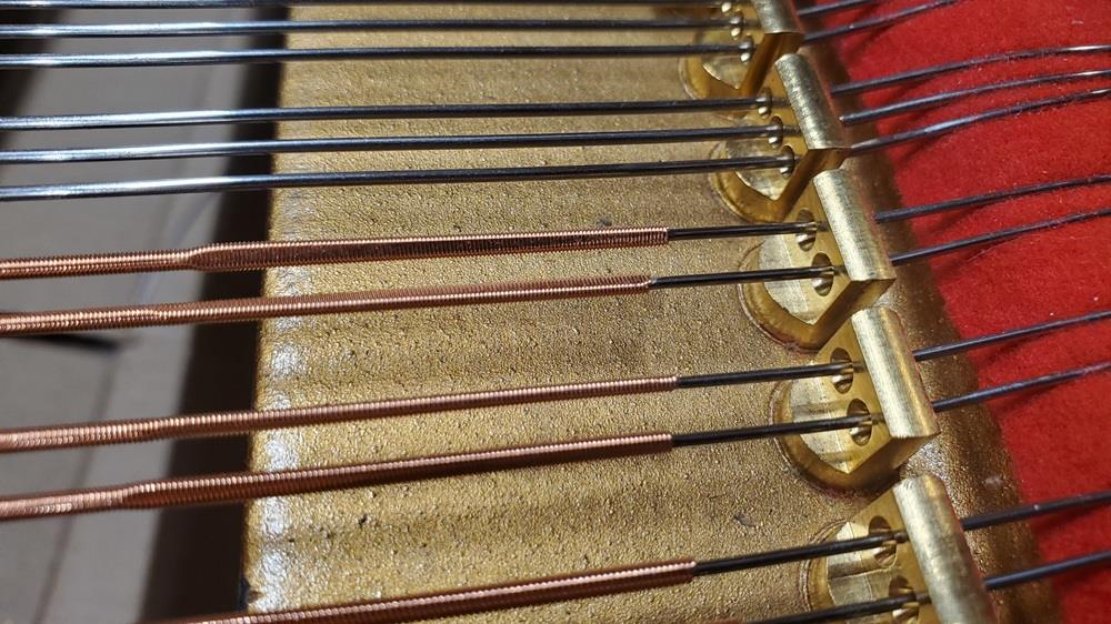 The replacement strings sound great, and it looks to me that it was the excessive swaging that had weakened the strings which resulted in the dead tone.