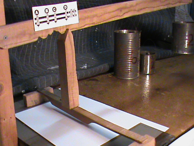 This setting in the pretension phase was usually done using what's called "distance bearing" and I'll refer you to the various DB articles in the series I mentioned to explain that. The basic idea is that you stretch a string from the agraffe extending beyond the bridge to the string rest and lower the string until it just touches the front edge of the bridge. The gap, or distance, between the string when held in this position, and the string rest behind the bridge is what's called the distance bearing. It is calculated by the (sine of the desired DB angle) * (the length of the backscale). If the desired angle is 1.5 degrees, the sine for which is .026, then to calculate the distance bearing multiply the sine of the angle times the length of the backscale. If the length of the backscale is 100 mm then the distance bearing, or the gap between the string when it is lowered and just touches the bridge, and the stringrest should measure .026 * 100mm = 2.6 mm.