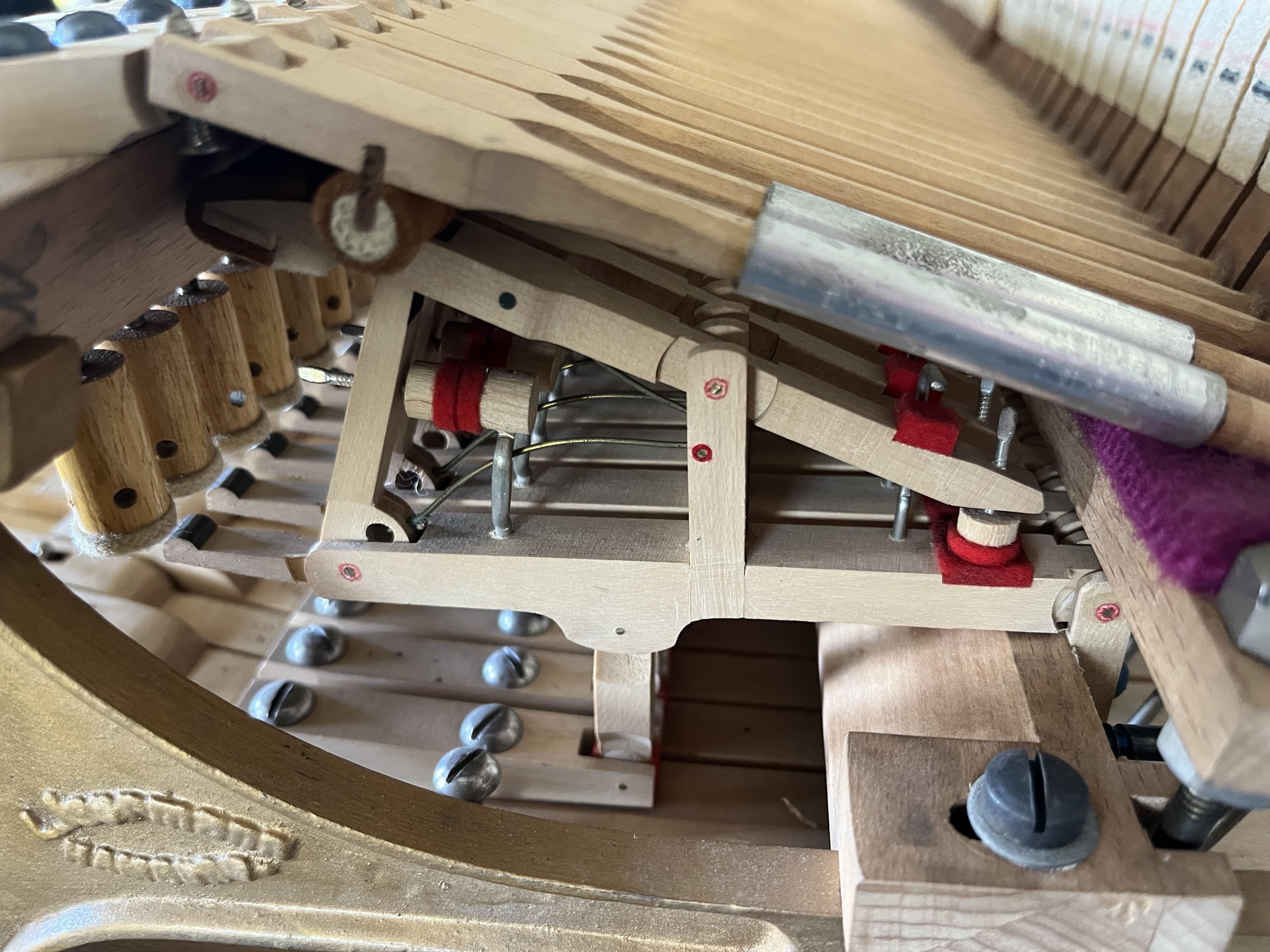 Does anyone have advice for regulating this old style wippen from the early 20th century Bechstein. By some coincidence, I have this customer who has two pianos from different manufacturers (Blütner and Bechstein) from the same era. It appears that instead of a capstain there is a block with a triangular bottom with two screws holding it down. I'm imagining the adjustment of blow distance may be achieved by backing off one screw and screwing in the other in a kind of lever action to raise the wippen. Is this correct? Anyone have experience with this style wippen?