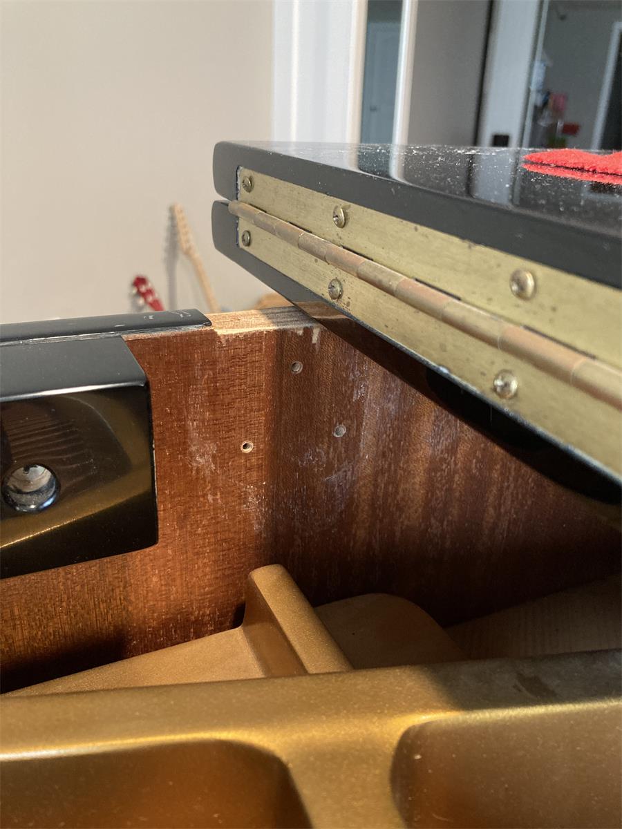 During the move, the hinge pins and the plates belonging to the piano rim were lost. My customer now has a baby grand with only half of the hinges for the lid.