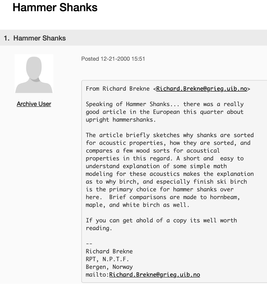 Then you might ask "Why did certain manufacturers (such as Chickering, in this case) choose cedar for their shanks??? Good reason or superstition?
