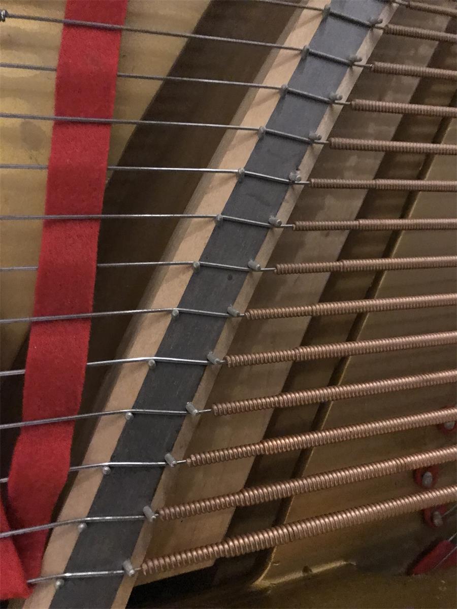 Client with Toyo grand complained that her bass kept going out of tune. I tuned it but couldn't get a fix on harmonics. A previous tuner had meddled with a pin leaving the a bushing proud of the plate and there was filing on a pressure bar. Client said I was the third person to tell her it couldn't be tuned…