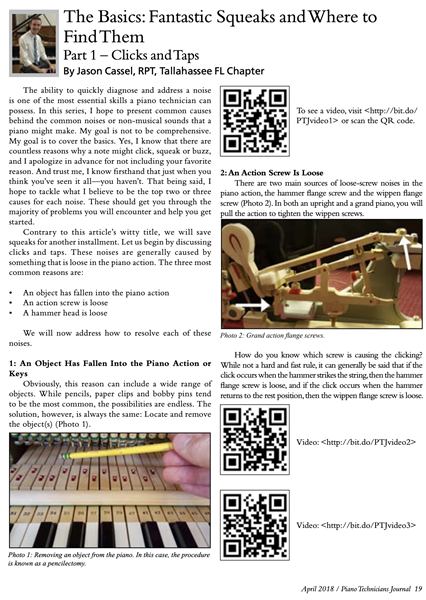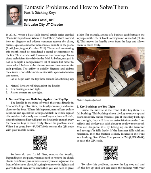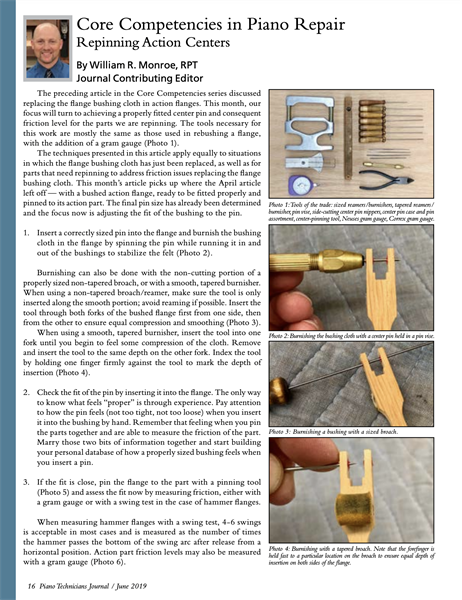 Monroe, Willam R. “Core Competencies in Piano Repair." Piano Technicians Journal.